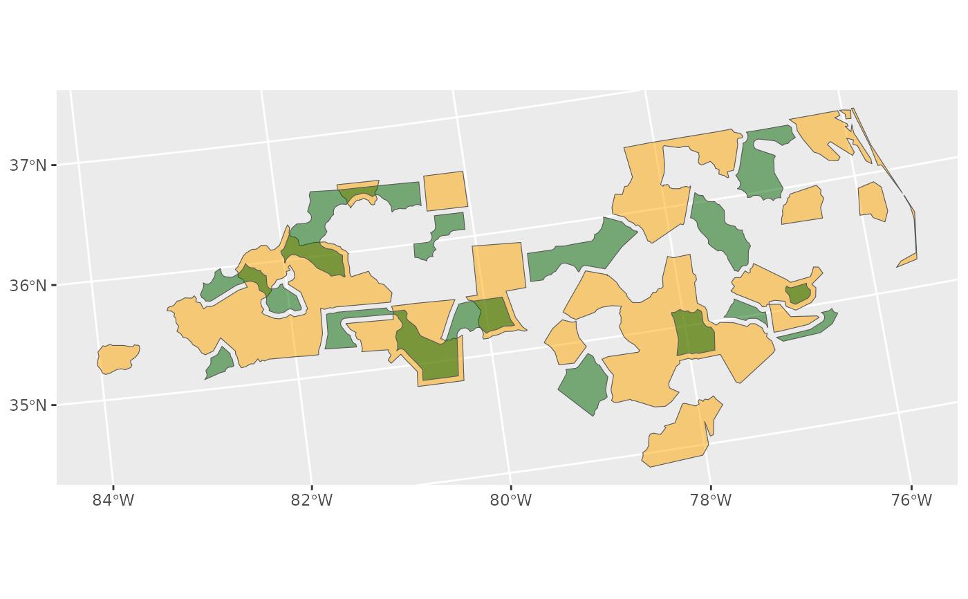 ggplot2::geom_sf(data = y, fill = "darkgreen", alpha = 0.5)